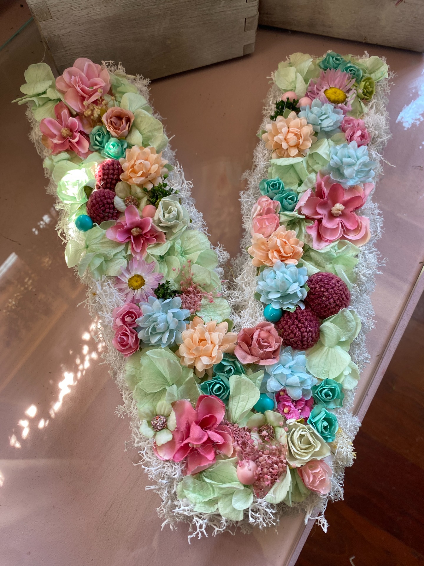 Preciosa letra floral en color verde manzana, muy elegante para un regalo.